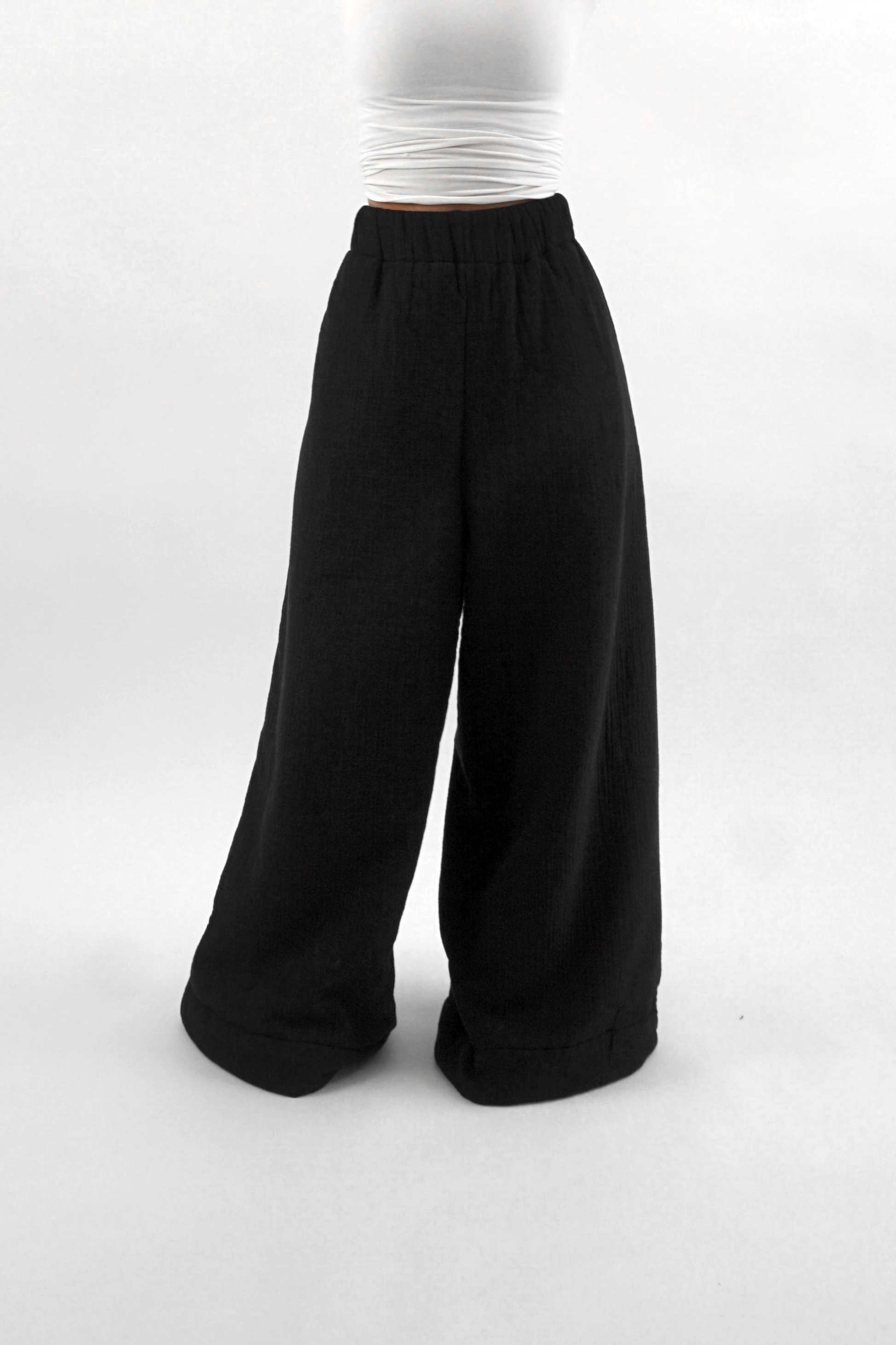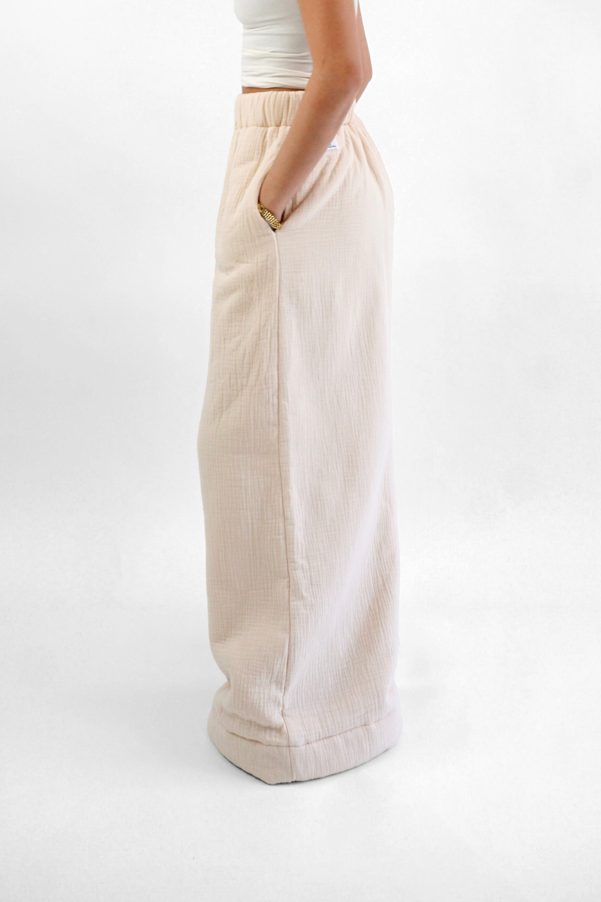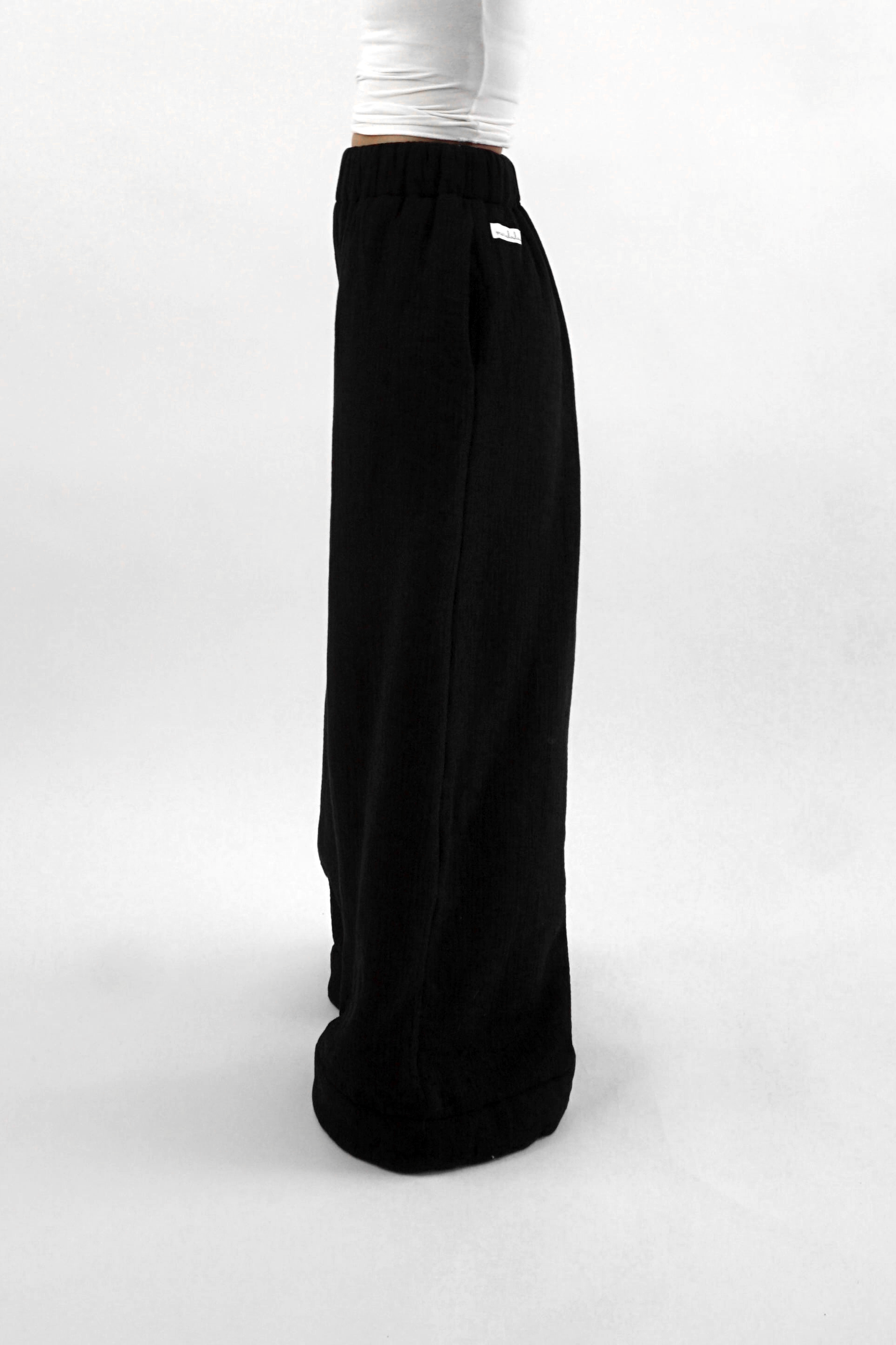 280 GSM sherpa and bubble gauze construction means these hit different than anything else you own. The stretchy waistband stays snug without digging in.